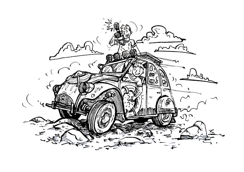 Ils voyageront en Citroën 2cv de 1971 ! Pas toute jeune mais elle sera comme neuve après leur heures de travail dessus (ou dessous).