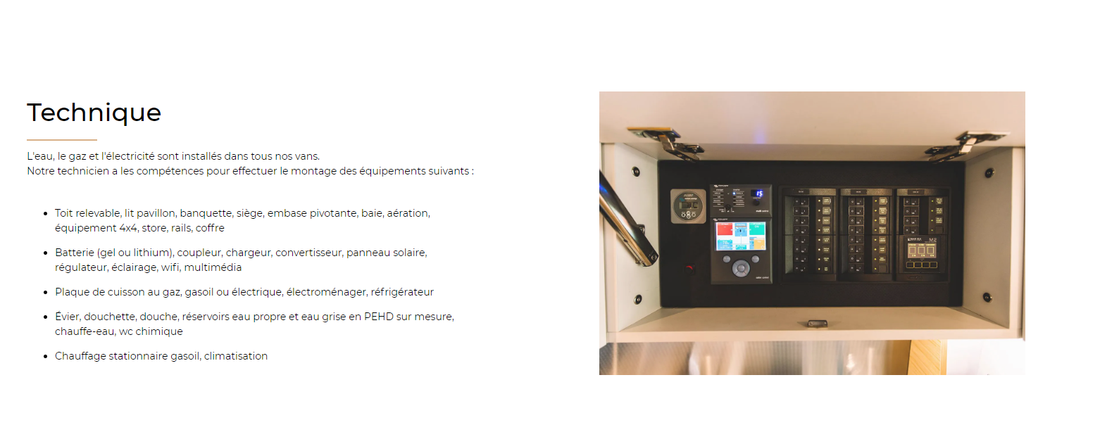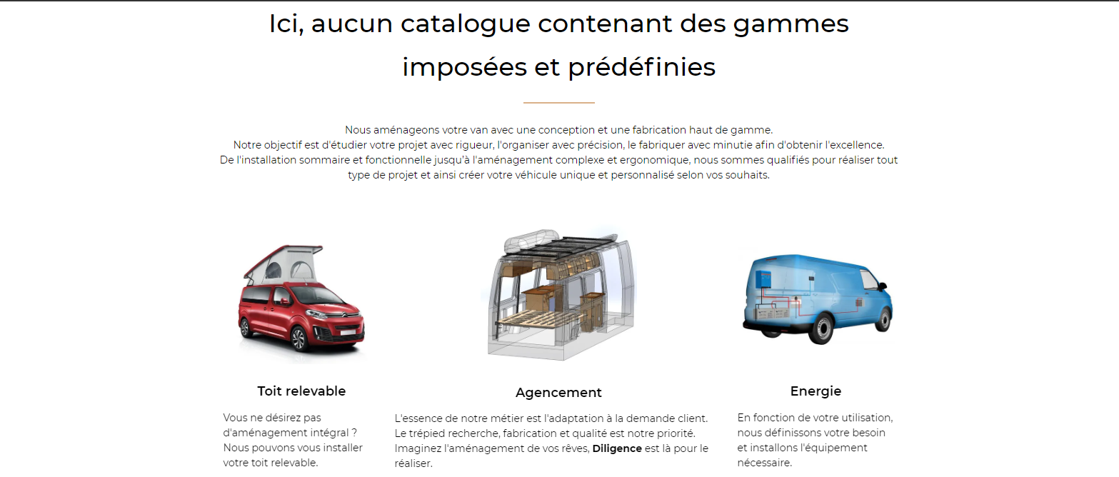 Nous savons que chaque personne a son propre univers. Vous ne trouvez pas de van répondant à votre fonctionnalité sur le marché ? Nous sommes là pour répondre avec une offre liant réflexion et fabrication.