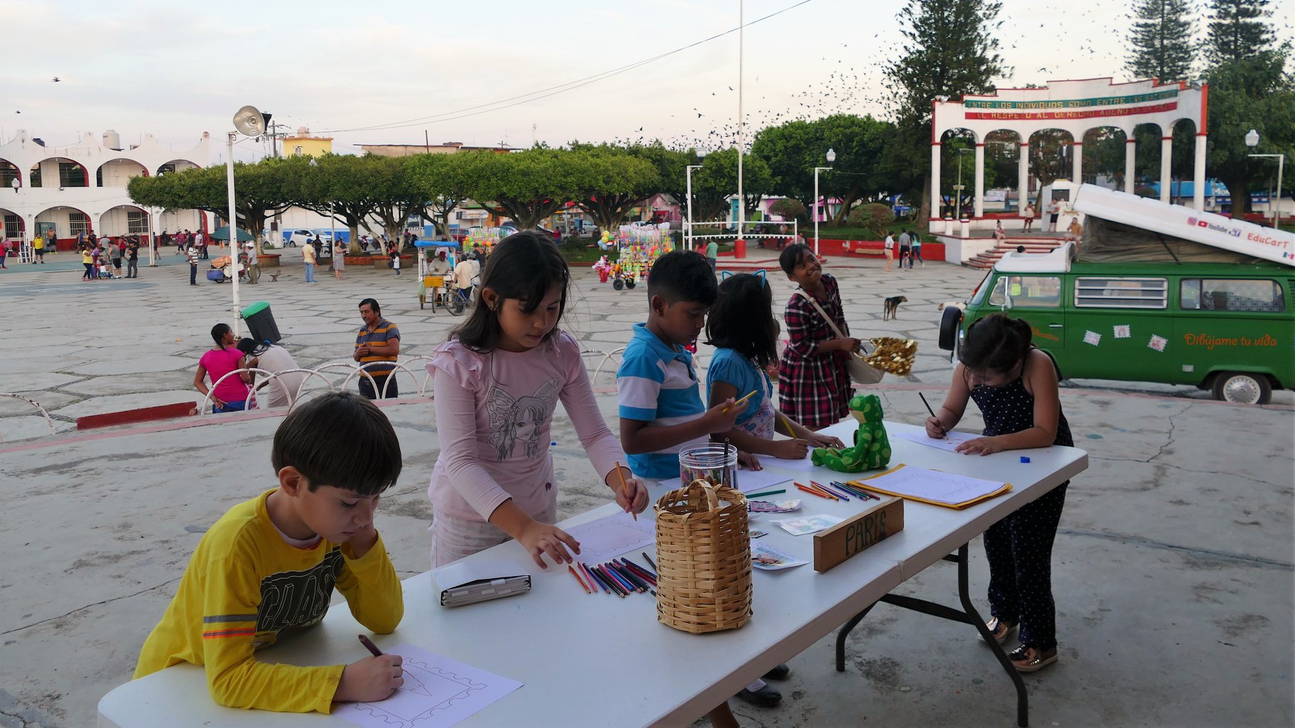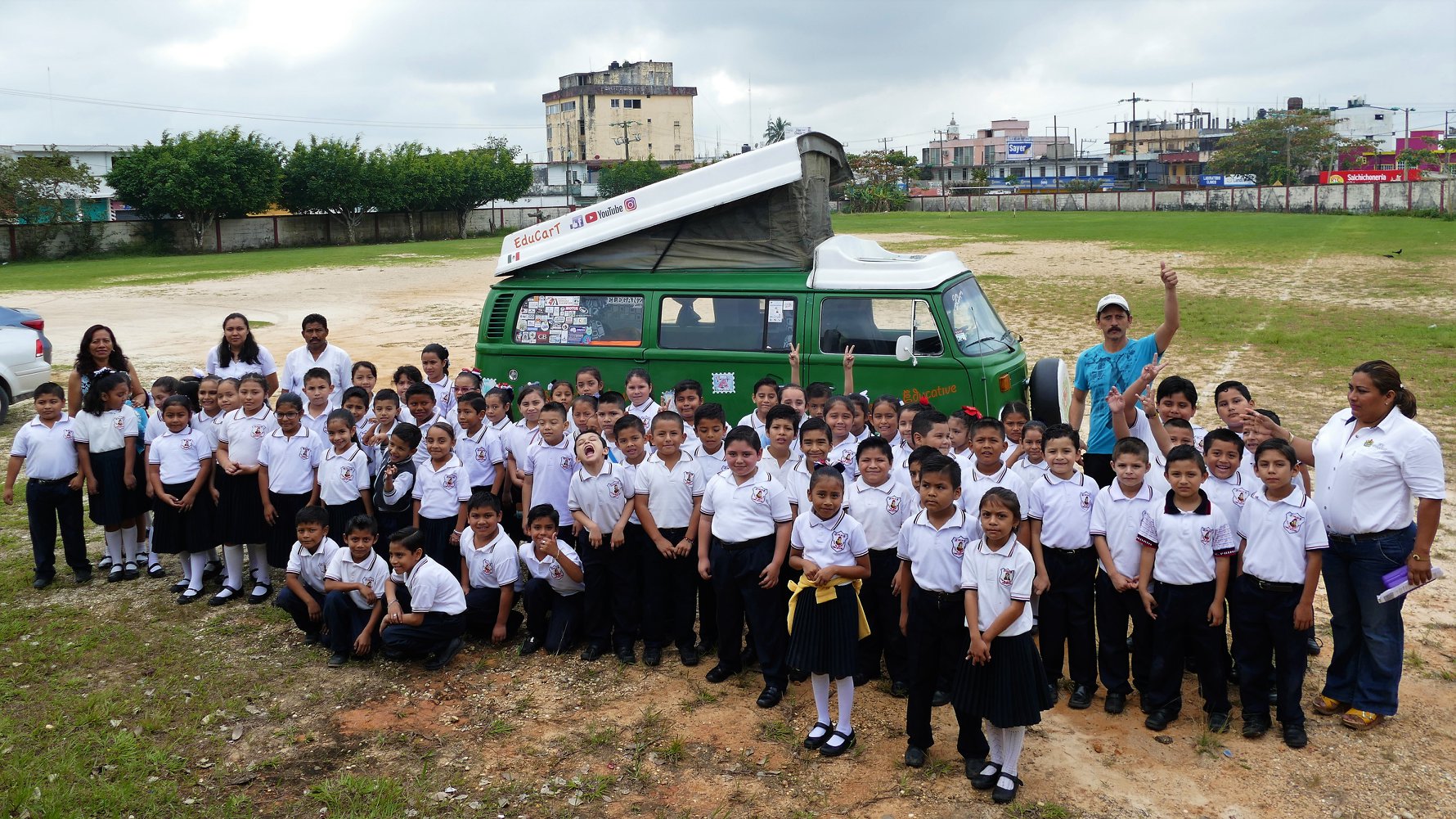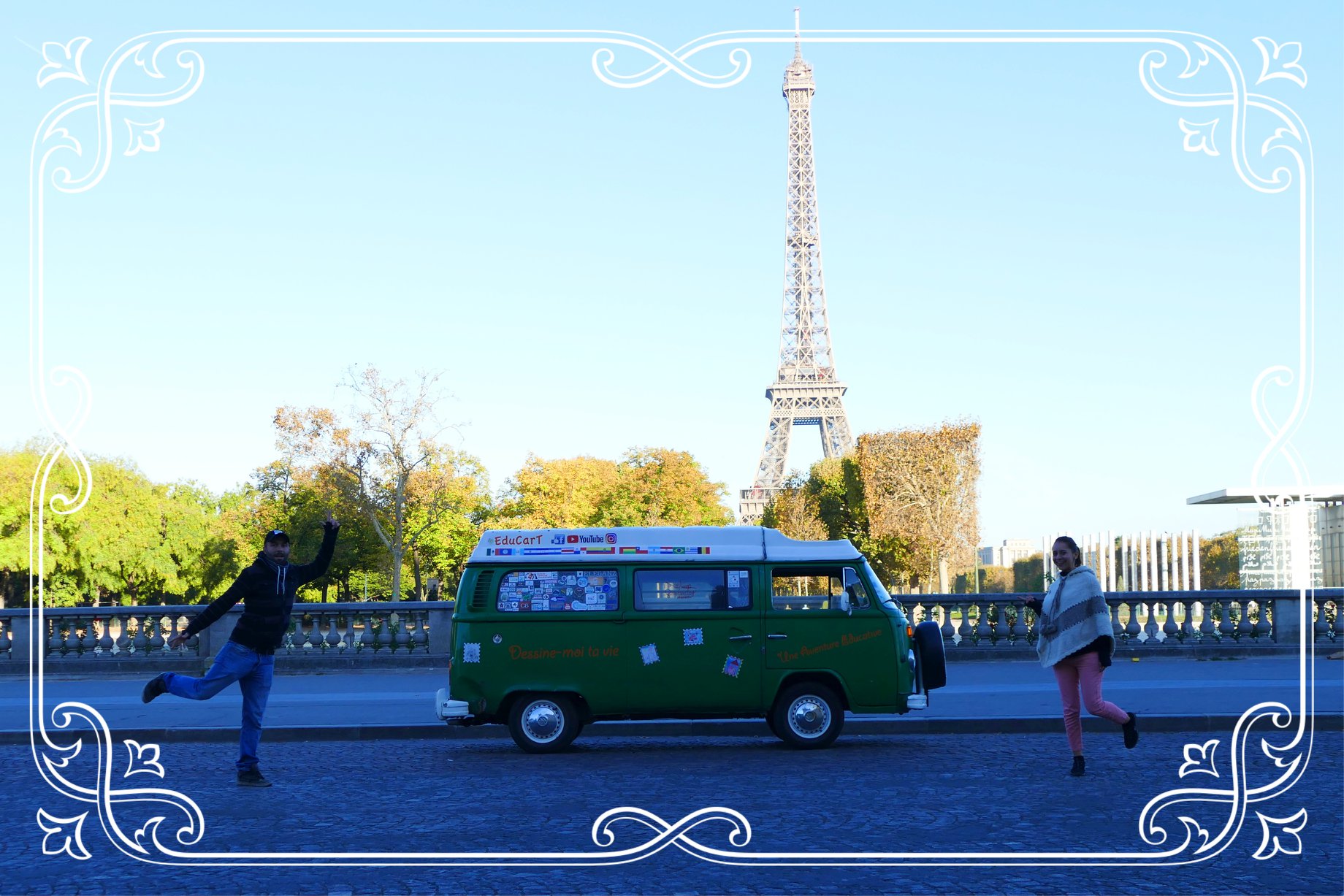 1 couple – 1 année de voyage – 18 pays – 90 écoles visitées – 10 000 dessins récoltés – 1 Combi de 43 ans