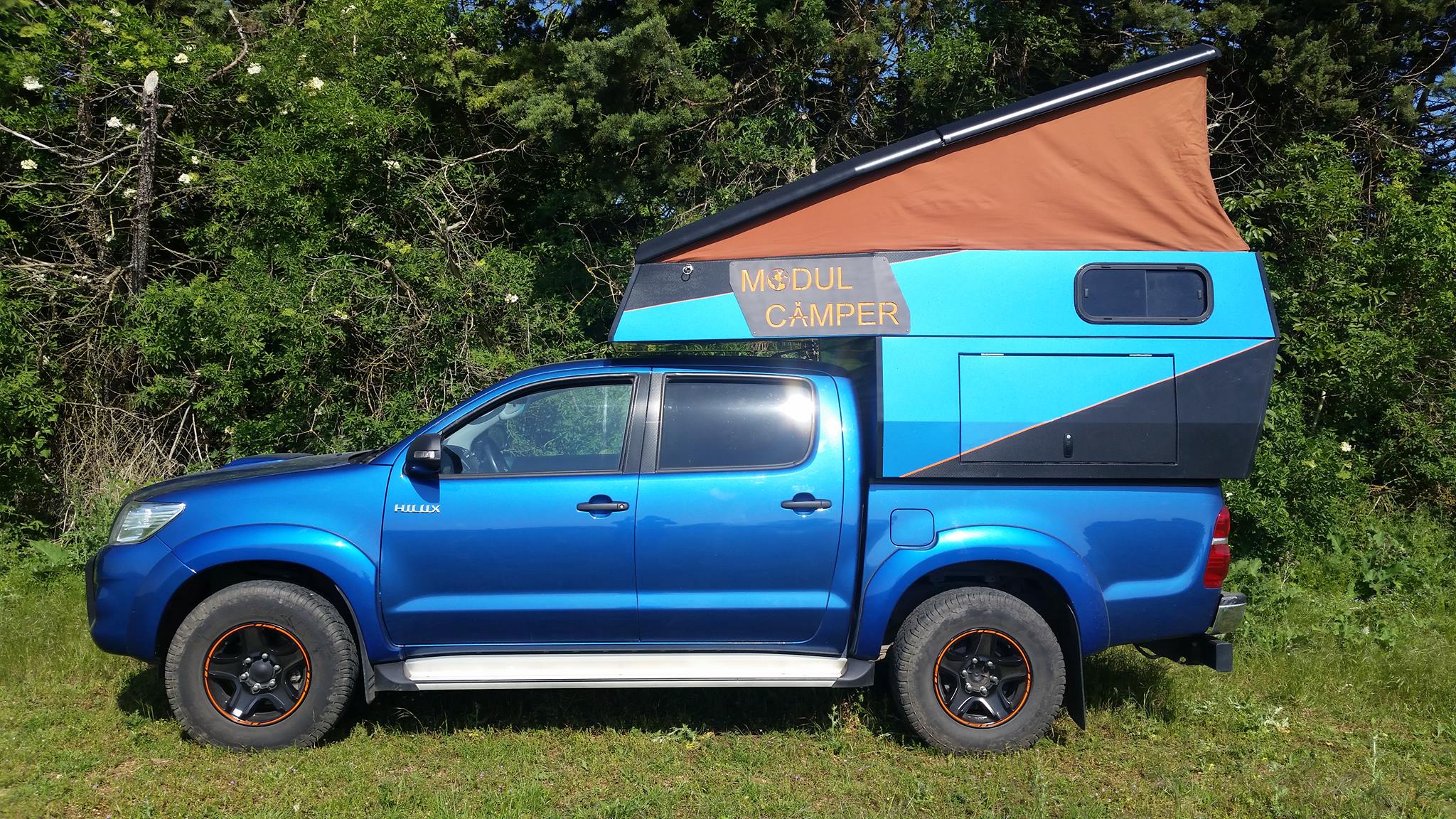 Modul-camper permet de vous évader en cellule, d’utiliser le hard top pour le travail ou les loisirs (3 portes d’accès) et le couvre benne pour garder le look du pick-up avec un coffre fermé.