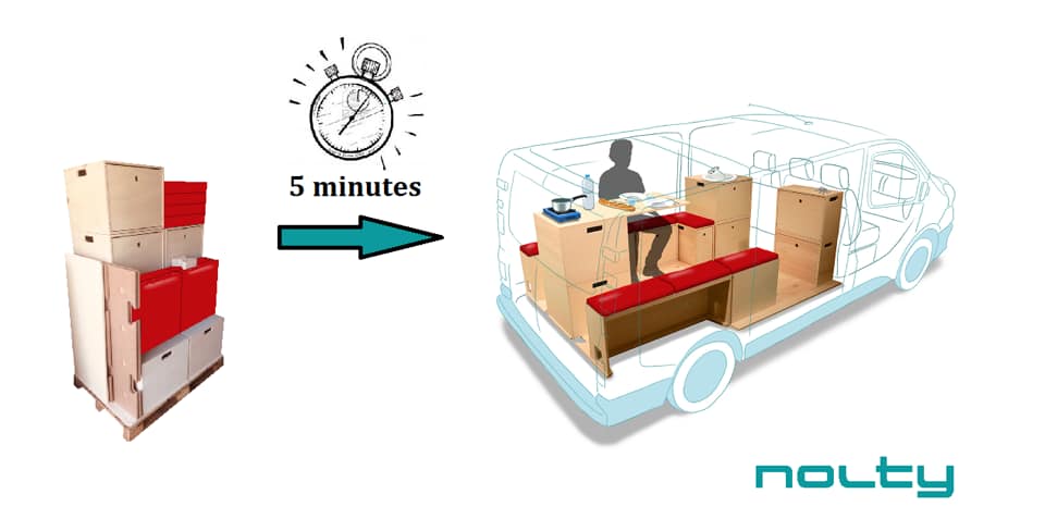 Quelques minutes suffisent pour transformer votre véhicule actuel en parfait van aménagé! 100% Modulable – Amovible – Rapide & Sans outil