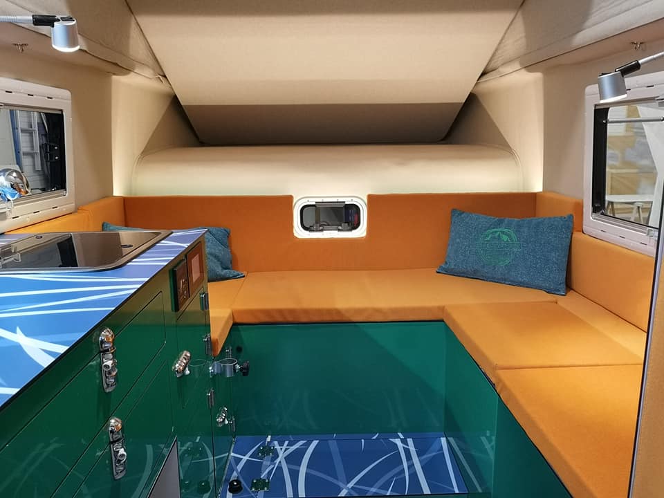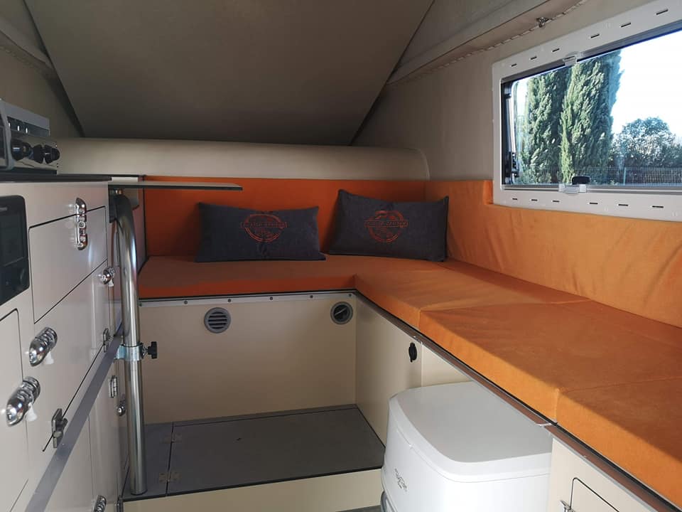 Minimaliste, sobre et robuste avec l’essentiel (électricité 12V, panneau solaire, batterie auxiliaire, eau chaude, chauffage..), taillé pour les pistes, mais pas que !