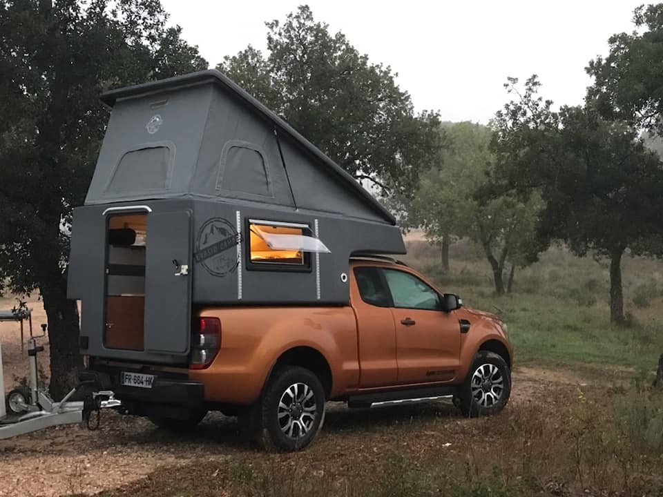 Nos cellules – Studios Cars sont fabriquées en polyester, moulées en une seule pièce, avec une âme isolante de 20 mm. Toit relevable assisté par vérins à gaz, toile isolante multicouches, avec 2 ouvertures latérales et une grande ouverture à l’arrière avec chacune volet et vitre/ moustiquaire.