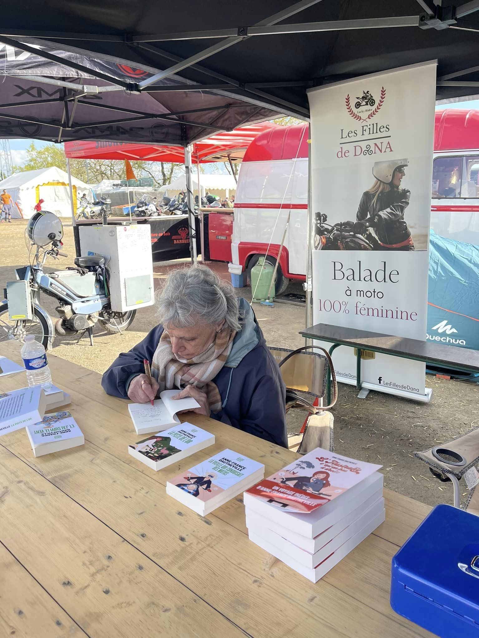 Il faut remercier nos invités Jean-Claude MARCHAND – Land Rover, Maximilien HOHLER – 2 cv, Bernard NAEF – Fiat Topolino, Anne-France DAUTHEVILLE – dédicace moto, Colline ESPOSIA – Royal Enfield, les VIDADVENTURES – Moto On et Off Road, Cecile BUBULE et Danick PARPAIX en Motobécane 51 . Il faut remercier nos partenaires, Radio VINCI Autoroutes pour les interviews en direct du SVAO-MQA et Village Motos pour son implication pour la réussite de la première édition du MQA. Il faut remercier les adhérents de Bénévoles Aventure et du Rancard des Motards qui, cette année encore, ont réussi l’impossible entre les incidents imprévus en raison des conditions climatiques, les 300 bières/heure à fournir au bar aux heures les plus chaudes et les inaugurations a assurer. L’atelier maquillage qui a réjoui plus de 50 enfants et leurs parents. Murielle et son équipe assure accueil, billetterie et conciergerie à l’entrée du salon. Il faut remercier les coordinateurs et leurs équipes, Sandra et Manu du MONDE DU RALLYE, Philippe du premier MOTO QUAD AVENTURE, Laurent RIE du deuxième DUSTER CAMP. Il faut les remercier, les encourager car sans eux rien ne serait possible.