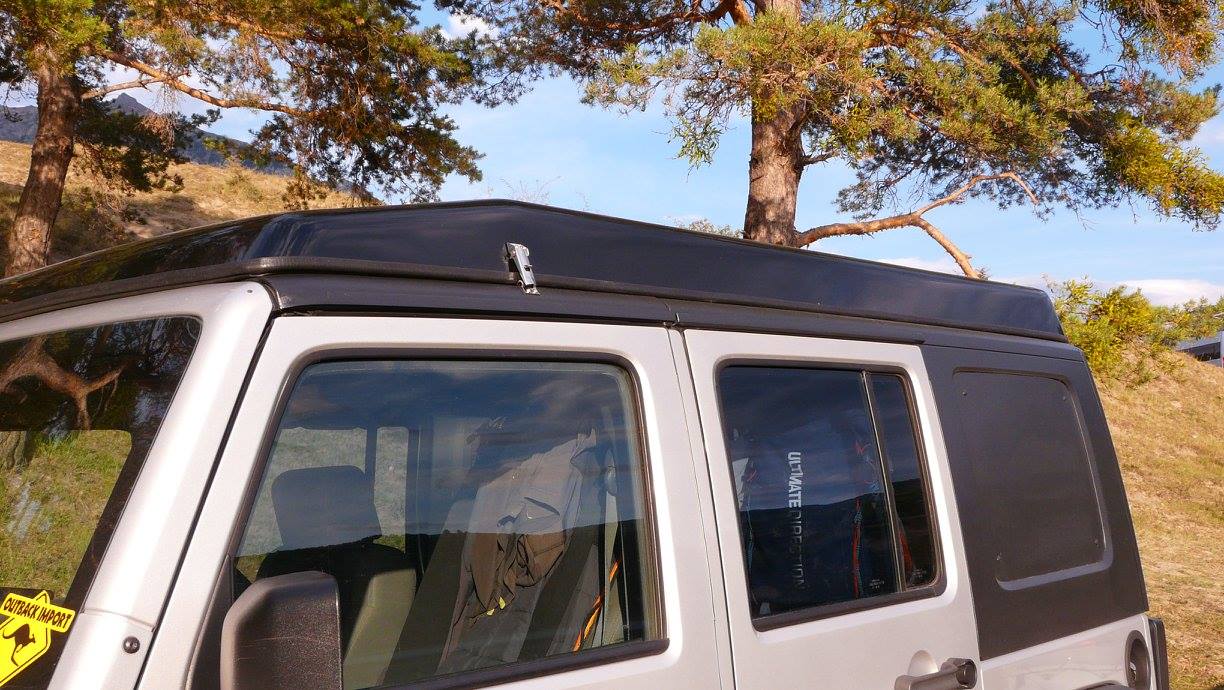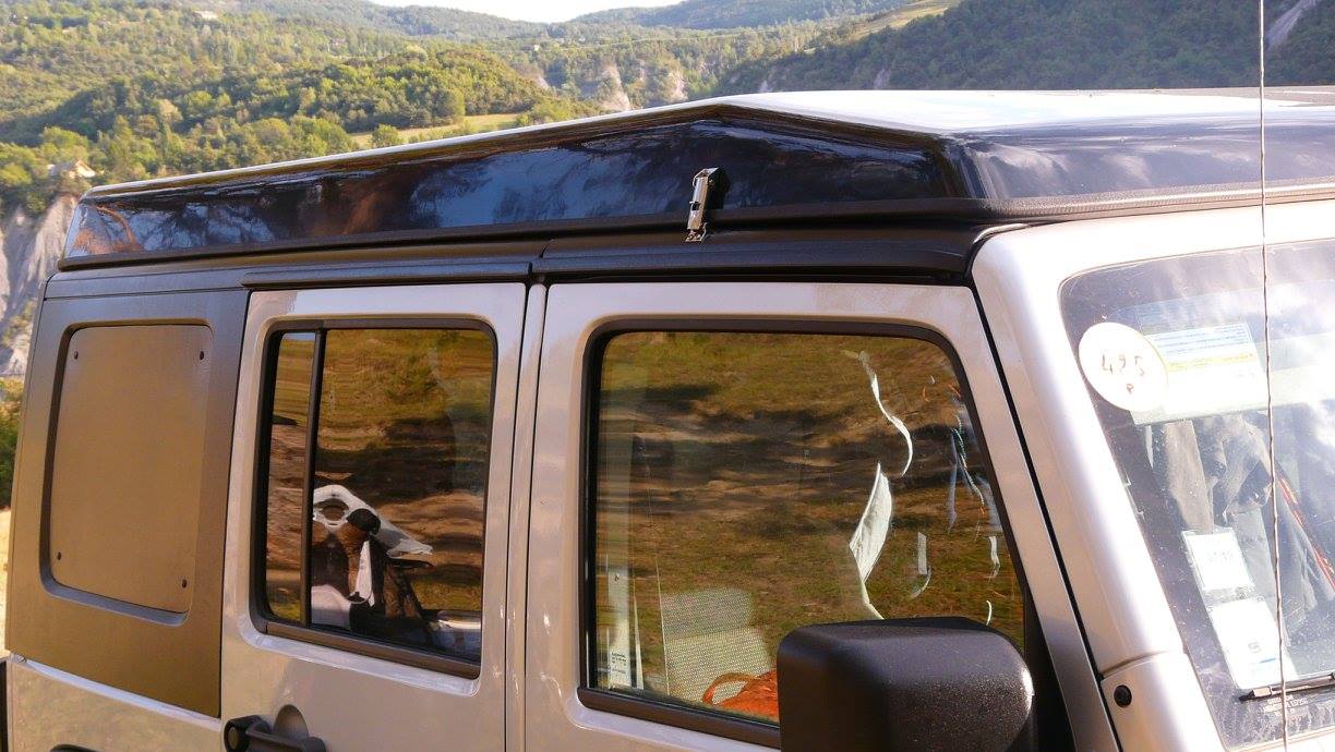 Notre système s’installe sur le Hard Top d’origine modifié qui reste amovible facilement.