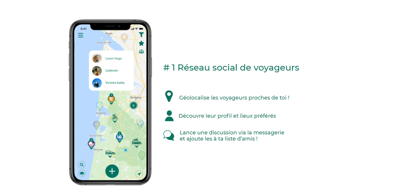 Un réseau social de proximité, tous les lieux essentiels au bon déroulement de tes voyages et de multiples fonctionnalités pour te faire gagner un temps précieux …